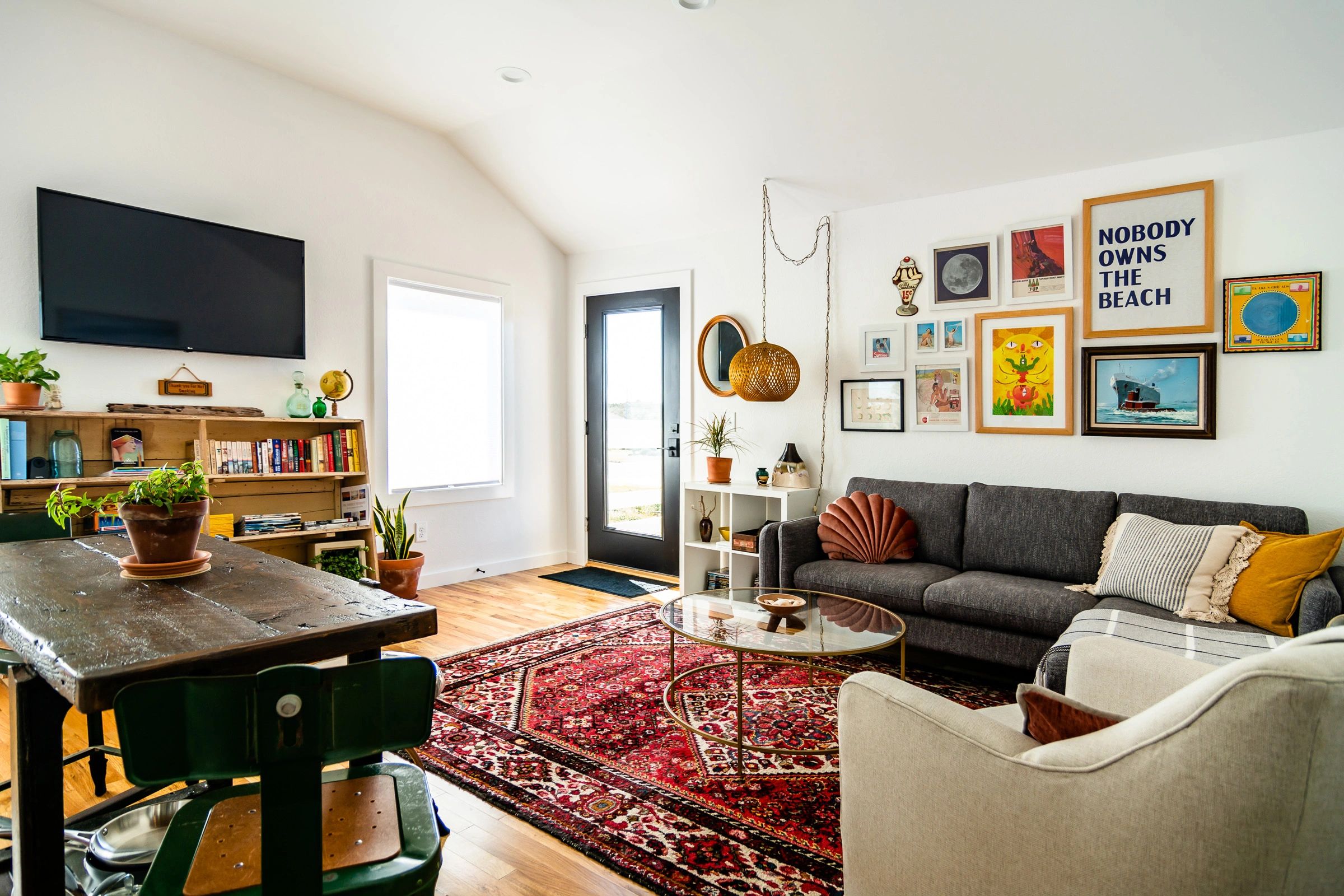 Located above our retail store & sweet shop, the apartment is 600 square feet of sun soaked space with solid oak floors and Outer Banks history scattered throughout. Antique heart pine doors salvaged from Kitty Hawk, a bookshelf in the living room from the original 70's era Kitty Hawk Country Store, and stools in the kitchen from a long closed schoolhouse inject a bit of old school Outer Banks charm into the space. Local and vintage art & photography we've collected over the years hang on the walls. Vintage rugs are juxtaposed against the clean modern lines of our new & comfortable furniture. The apartment reflects the vibe of our shop downstairs, mixing a curated collection of vintage & new that we think you will enjoy. There are 2 smart TV's, Netflix and Wifi.