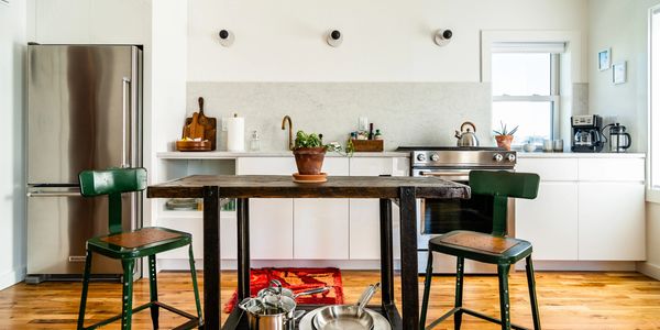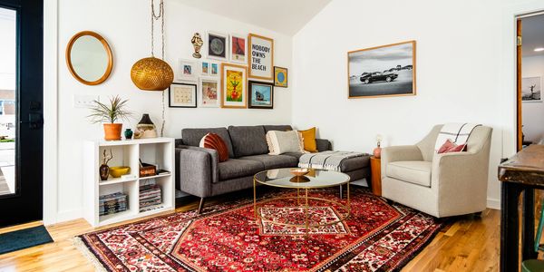 Enjoy an open living plan with a fully equipped kitchen featuring Kitchen Aid appliances and a gas range plus everything you need for cooking meals. Knife set, toaster, coffee maker & french press, a tea kettle, cutting boards, pots & pans, cooking & serving utensils, vintage glasses and plates. We also provide olive oil, salt & pepper, sugar and a few basic spices. Complimentary fresh ground coffee, fruit and granola bars await your first morning here. Barstools at a table that doubles as an island is where you can enjoy your meals, or opt to eat outside at one of the outdoor tables. We do not currently have a microwave but have the space to add one soon!